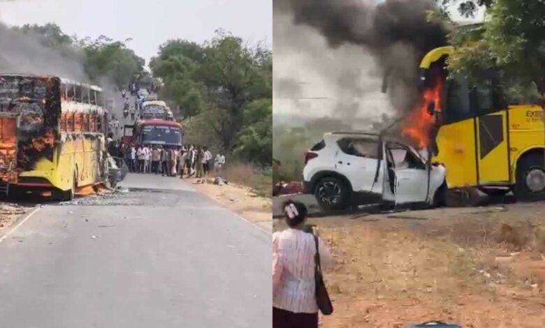 कर्नाटक में एक बस और कार की टक्कर में आग लगने से छह लोगों की मौत