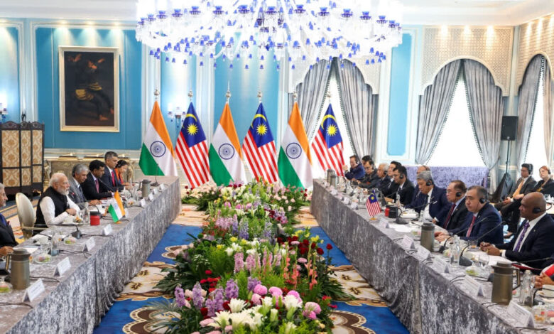 मलेशिया की दो दिवसीय यात्रा पर आए प्रधानमंत्री मोदी ने एक संयुक्त प्रेस विज्ञप्ति में कहा कि भारत और मलेशिया रक्षा सहयोग को और अधिक व्यापक बनाएंगे, साथ ही उन्होंने इस बात पर जोर दिया कि दोनों देश एक “विशेष संबंध” साझा करते हैं। प्रधानमंत्री मोदी ने इब्राहिम से बातचीत के बाद कहा, “एआई और डिजिटल प्रौद्योगिकियों के साथ-साथ हम सेमीकंडक्टर, स्वास्थ्य और खाद्य सुरक्षा के क्षेत्र में साझेदारी को आगे बढ़ाएंगे।”