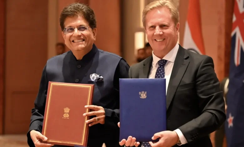 निर्यात के नए बाज़ार खोलने और व्यापार नियमों को आसान बनाने की दिशा में एक महत्वपूर्ण कदम उठाते हुए, भारत और न्यूज़ीलैंड ने एक मुक्त व्यापार समझौते पर हस्ताक्षर किए हैं । वाणिज्य और उद्योग मंत्री पीयूष गोयल और न्यूज़ीलैंड के व्यापार और निवेश मंत्री टॉड मैक्ले की उपस्थिति में इस समझौते पर हस्ताक्षर किए गए। यह मुक्त व्यापार समझौता भारत के न्यूज़ीलैंड को होने वाले सभी निर्यातों को शुल्क-मुक्त पहुँच प्रदान करता है, जिसमें सभी टैरिफ लाइनें या उत्पाद श्रेणियां शामिल हैं।
