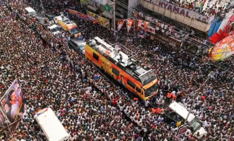 करूर में विजय की पार्टी, तमिझागा वेत्री कझगम (TVK) द्वारा आयोजित एक रैली के दौरान भगदड़ मच गई। अधिकारियों ने बताया कि इस कार्यक्रम में 27,000 से ज़्यादा लोग शामिल हुए थे—जो अनुमानित संख्या से लगभग तीन गुना ज़्यादा है। पुलिस ने इस अफरा-तफरी के लिए आंशिक रूप से विजय के कार्यक्रम स्थल पर पहुँचने में सात घंटे की देरी को ज़िम्मेदार ठहराया है। अदालत ने भीड़ पर नियंत्रण बनाए रखने में विफल रहने के लिए कार्यक्रम आयोजकों, टीवीके नेताओं और स्थानीय पुलिस की आलोचना की।