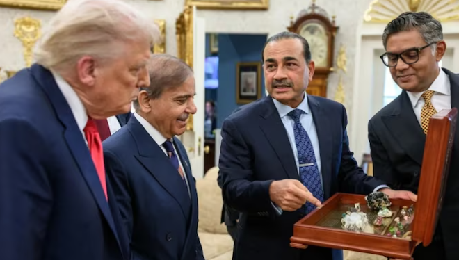 इस हफ्ते व्हाइट हाउस ने एक फोटो जारी की, जिसमें ट्रंप उत्सुकता से मुनीर द्वारा भेंट की गई लकड़ी की पेटी का निरीक्षण कर रहे हैं, जबकि प्रधानमंत्री शहबाज शरीफ पृष्ठभूमि में खड़े हैं। यह फोटो-ऑप पाकिस्तानी नेताओं के ट्रंप के साथ बंद कमरे की बैठक के बाद हुआ। वास्तव में, मुनीर का यह अमेरिका का तीसरा दौरा है—पिछले पांच महीनों में—जो पाकिस्तान और ट्रंप प्रशासन के बढ़ते जुड़ाव को दर्शाता है।
