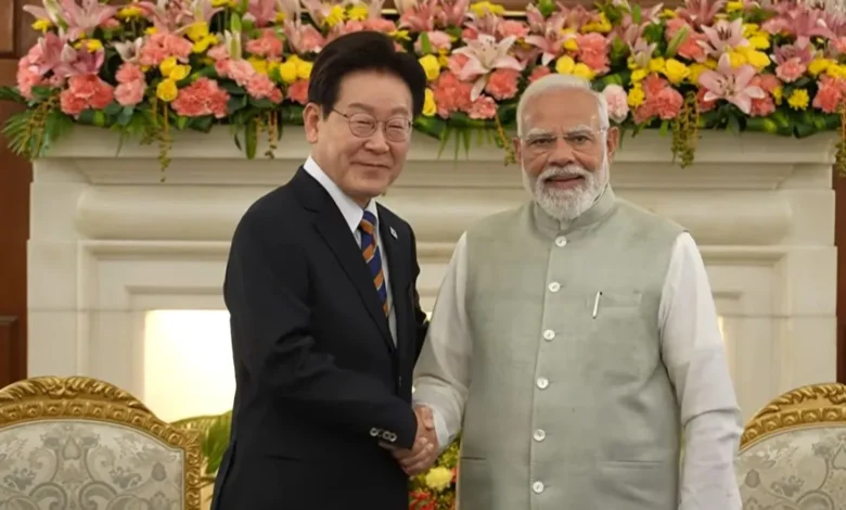 प्रधानमंत्री नरेंद्र मोदी ने सोमवार को नई दिल्ली स्थित हैदराबाद हाउस में दक्षिण कोरिया के राष्ट्रपति ली जे म्युंग के साथ द्विपक्षीय बैठक की। यह बैठक दक्षिण कोरिया की तीन दिवसीय राजकीय यात्रा के अंतर्गत हुई। दोनों नेताओं की बैठक में वैश्विक स्तर पर जारी अस्थिरता के बीच भारत और दक्षिण कोरिया के बीच रणनीतिक और आर्थिक संबंधों को और मजबूत करने पर ध्यान केंद्रित किया गया। बैठक शुरू होने से पहले विदेश मंत्रालय ने कहा था कि दोनों नेता कई क्षेत्रों में द्विपक्षीय सहयोग को मजबूत करने के लिए बातचीत करेंगे।