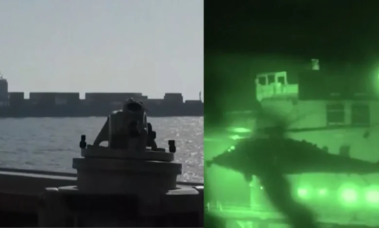 अमेरिकी सेंट्रल कमान ने ओमान की खाड़ी में हुए नौसैनिक टकराव का फुटेज जारी किया है, जिसमें एक अमेरिकी विध्वंसक पोत ने समुद्री नाकाबंदी तोड़ने की कोशिश कर रहे एक ईरानी पोत को रोका। वीडियो में निर्देशित मिसाइल विध्वंसक पोत स्पूरांस को उत्तरी अरब सागर में आगे बढ़ रहे ईरानी पोत तोस्का का पीछा करते और उसके करीब पहुंचते हुए दिखाया गया है। अमेरिकी केंद्रीय कमान के अनुसार, पोत को अपना मार्ग रोकने के लिए कई बार निर्देश जारी किए गए।